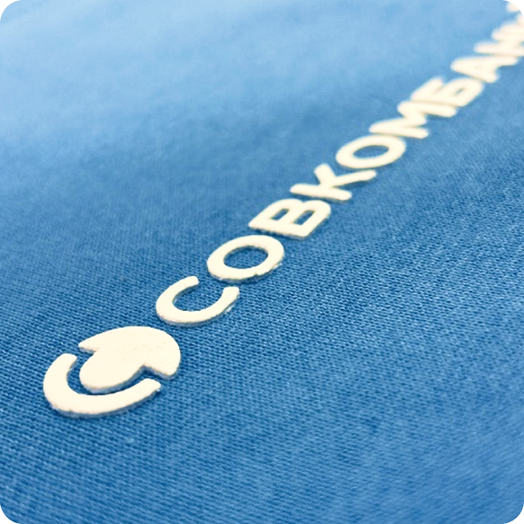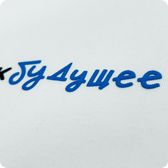 Для брендирования футболок была выбрана шелкография с высоким слоем. Этот способ позволяет создать объемный принт, который не только хорошо смотрится визуально,