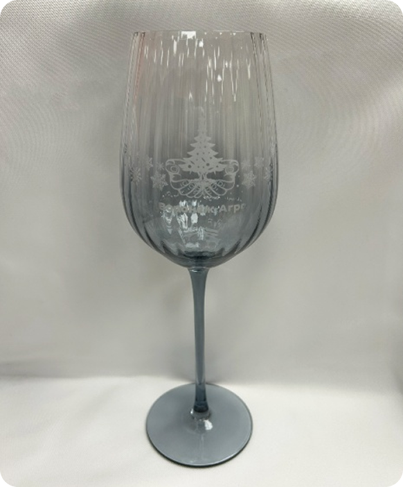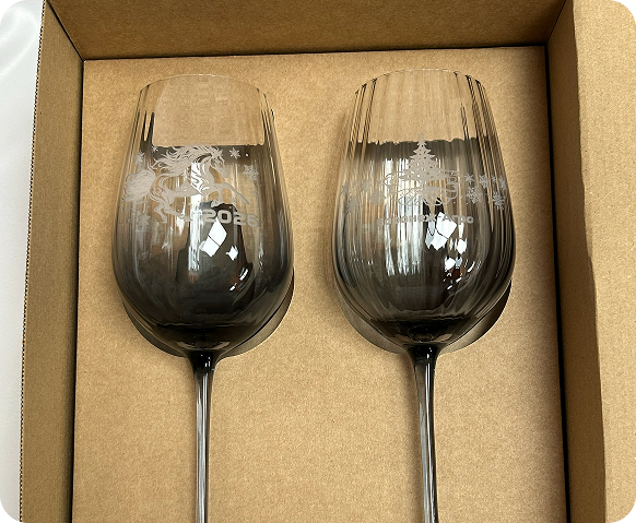 Второй вариант набора состоит из двух бокалов с аккуратной гравировкой, выполненной в том же стиле, что и в первом варианте. Этот набор практичен и подходит для широкого круга клиентов, сохраняя минимализм и праздничную атмосферу.
