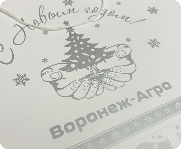 Наборы размещены в брендированных коробках с нанесением шелкографией. Также были изготовлены пакеты с серебряной печатью по Pantone для передачи праздничного и новогоднего настроения. Даже упаковка отсылает к праздничным мотивам и логотипу компании, что придает завершенность образу.