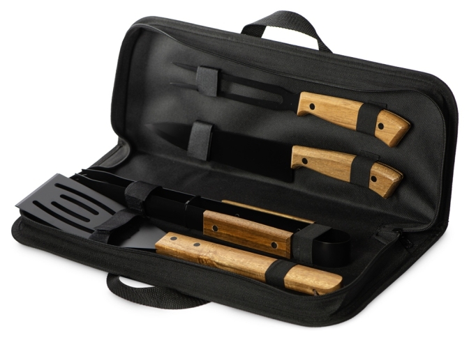 Комплектность: спатула, щипцы, вилка, нож, чехол на молнии.