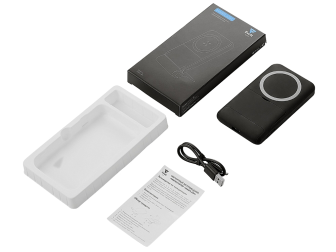 Комплектность: магнитный внешний аккумулятор с беспроводной зарядкой, кабель usb - type c, инструкция.