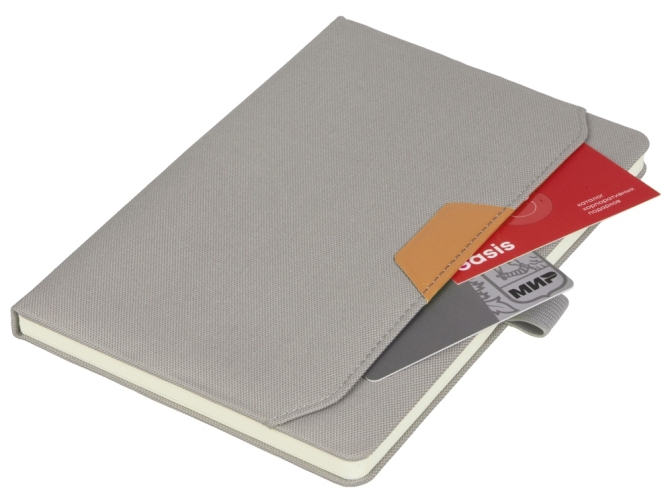 На обложке есть карман, в который можно класть как визитки, так и карточки и бумаги.