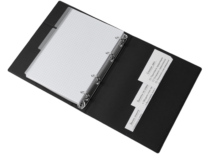 Блокнот Favor на кольцах делает его практически бесконечным в использовании, т.к. листы очень легко меняются и добавляются, а обложка из искусственной кожи делает его очень износостойким. Обложка с карманами для визиток и различных записок. В блоке есть 2 разграничителя, которые могут использоваться как ляссе или разделители разных тем. Благодаря кольцам, листки и разделители легко вынимаются и вставляются обратно. В блоке 80 листов бумаги 70 г/м2. Favor — серия товаров, выполненных из экокожи, что позволяет составлять из этой продукции стильные бизнес-сеты в едином стиле.