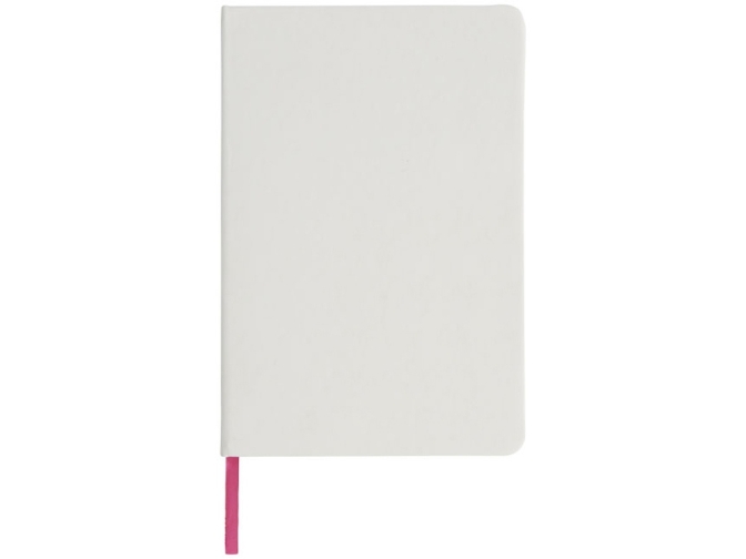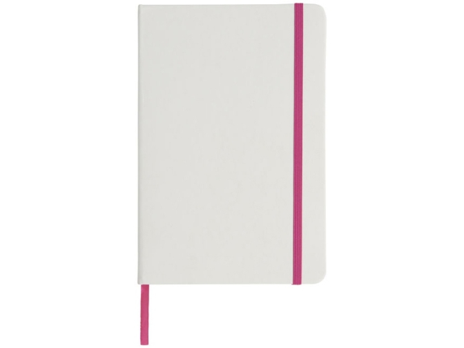 Белый блокнот A5 с цветной эластичной закладкой и резинкой. 96 страниц (60g/m2), линованная бумага. На обложке возможна цифровая печать.