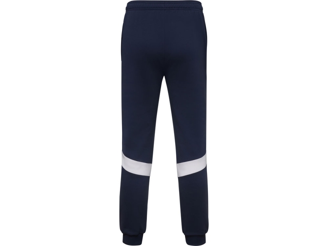 Спортивные брюки с эластичным поясом и шнурком. Боковые карманы закрываются на молнию. Контрастные лампасы белого цвета. Низ с манжетами из риба 1х1. Может быть с комбинирован с курткой Leros.