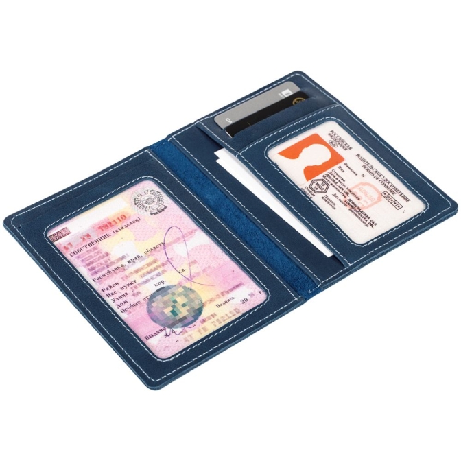 Бумажник для документов из натуральной кожи с декоративной строчкой.Два прозрачных кармана для водительских прав и документов на автомобильДва глубоких кармана для других документовДва кармана для пластиковых картОдин потайной карман