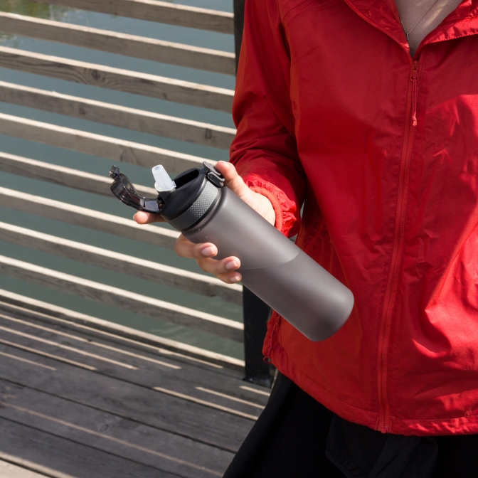 Спортивная бутылка FLIP объемом 700 мл идеальна для людей, ведущих активный образ жизни. Бутылка изготовлена из высококачественного пластика – Eastman Tritan™ с покрытием soft touch, не содержит Бисфенол А (BPA free), а значит безопасна в использовании.