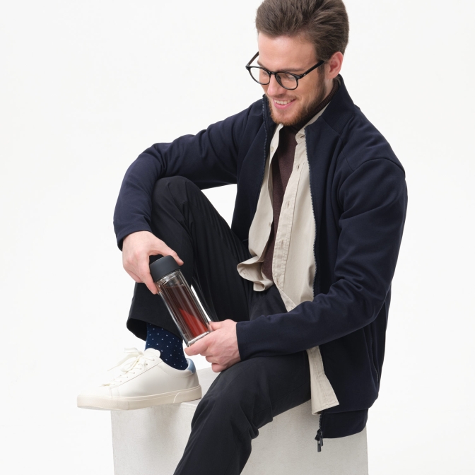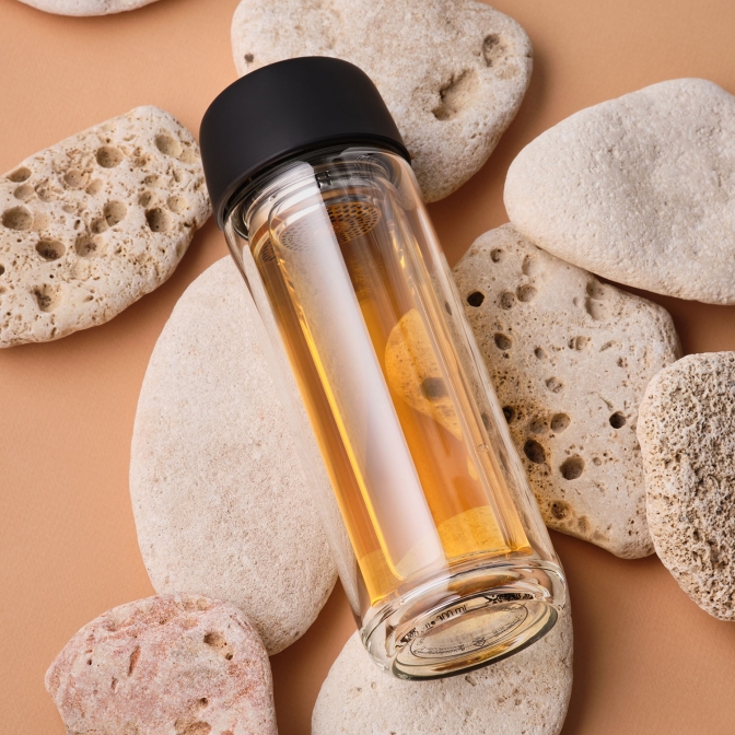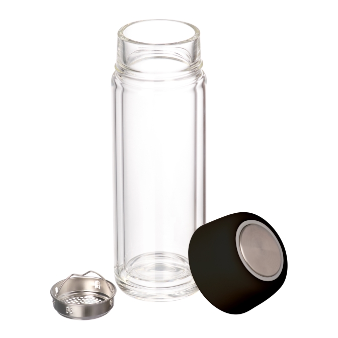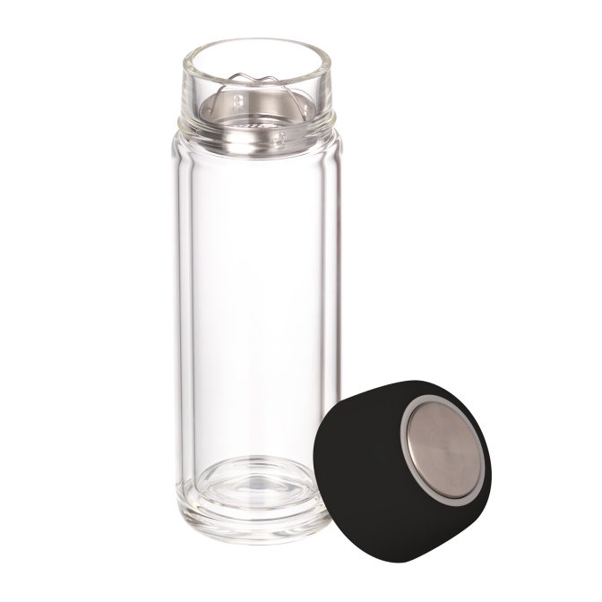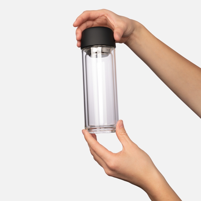Стеклянная бутылка с двойными стенками позволит носить свежезаваренный чай с собой. Ситечко позволит заварить чай прямо в бутылке. Бутылка сделана из боросиликатного стекла, которое отличается устойчивостью к высоким температурам, перепадам температур и коррозии. Стекло не вступает ни в какие химические реакции с напитками, не боится ни кислот, ни солей, ни накипи. Благодаря стенкам из двойного стекла, бутылка сохраняет тепло до 2 часов. Кроме того, ее спокойно можно держать руками, даже если в ней кипяток.Характеристики:Боросиликатное стеклоКрышка сделана из качественного пластика, который не содержит Бисфенол А (BPA FREE). Плотно закрывается и защищает от случайного проливания.Размер: 65 х 65 х 200 ммОбъем: 300 млВес: 430 гУпаковка: подарочная коробка (Тип: без окошка)Размеры товара: