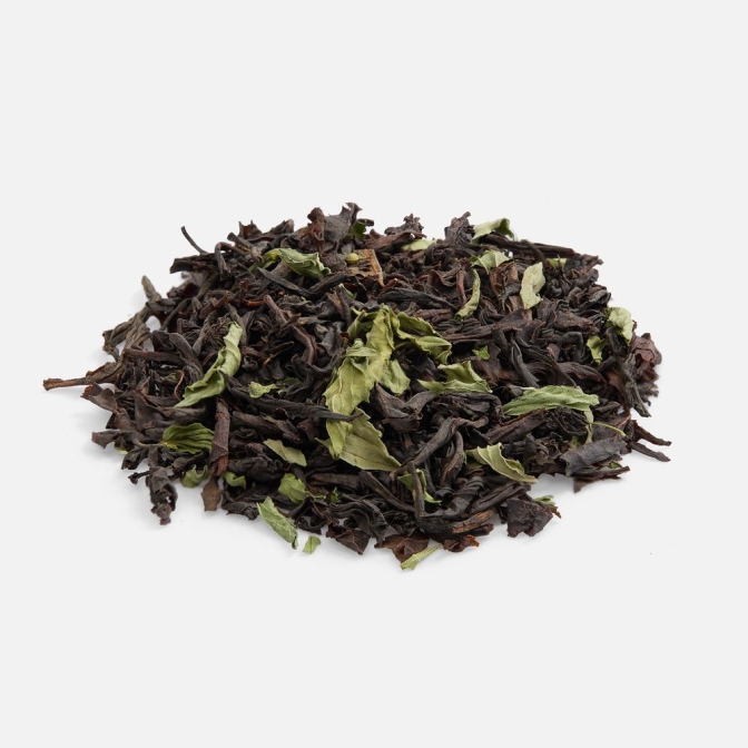 Классический крупнолистовой чай из Индии с листочками мяты прекрасно снимает напряжение в конце рабочего дня. Легко заваривается и имеет насыщенный вкус с ментоловыми нотками. Напиток хорошо дополняют фруктовые десерты и мед.Состав: чай черный, мята, цветки мальвы. Вес нетто: 70 г. Срок годности: 24 месяца.