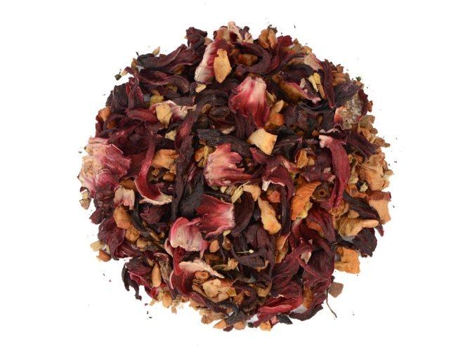 Состав: гибискус, кусочки яблока, шиповник, корица, имбирь, цедра апельсина, гвоздика.