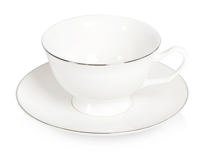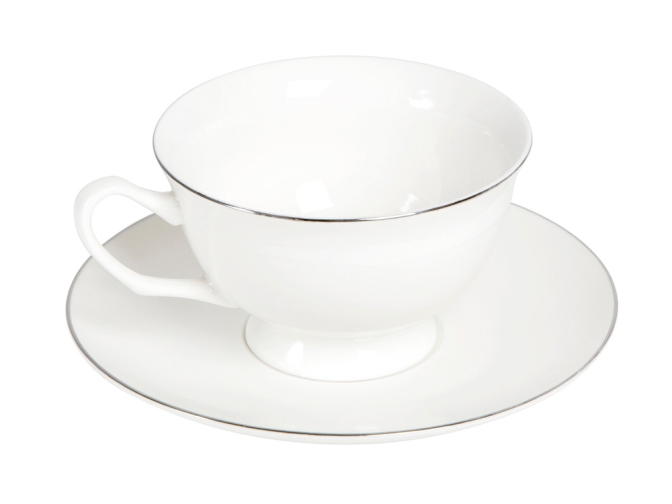 Изящная чайная пара с серебристым кантом от Eat&Bite создаст особенную атмосферу чаепития по-английски.
