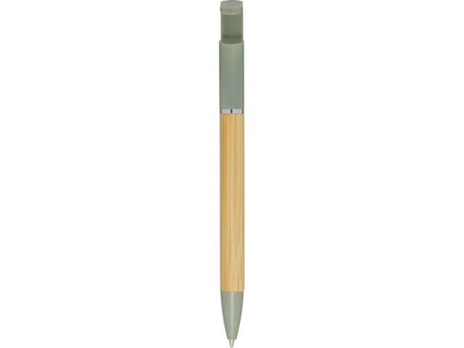 Бамбуковая шариковая ручка, которая также может служить подставкой для телефона. Кнопка и среднее кольцо изготовлены из переработанного пластика, наконечник — из латуни, а корпус — из бамбука, полученного из ответственных источников. Цвет чернил: черный. Длина непрерывной линии: 1000 метров. Размер пера: 1,0 мм. FSC certified bamboo. FSC Mix Credit N5 CU-COC-877277.