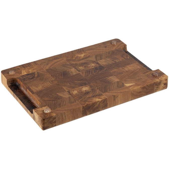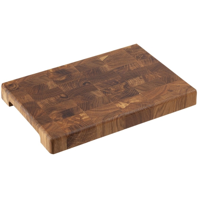 Торцевая разделочная доска из дуба — выбор шеф-поваров и подарок премиум-класса. Главная особенность доски заключается в том, что древесные волокна в ней размещены перпендикулярно режущей поверхности, а не параллельно, как в обычных разделочных досках.Благодаря торцевому срезу:Реже требуется заточка кухонных ножей.Поверхность доски не деформируется от резки и кусочки древесины не попадают в пищу.Поверхность, пропитанная маслом, менее подвержена заражению бактериямиЧтобы разделочная доска служила долго, не оставляйте ее в мокром состоянии и регулярно обновляйте масляный слой.
