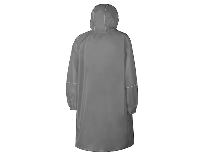 Дождевик - пончо прямого силуэта. Нагрудный карман плаща закрывается на молнию, которая дополнительно защищена клапаном, а еще в него можно полностью убрать дождевик. На дне кармана — ручка-петелька, которая в сложенном виде может использоваться для подвешивания.