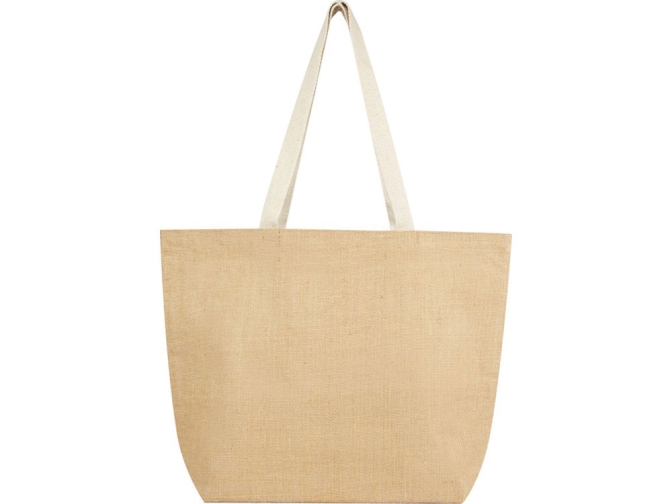 Прочная и износостойкая эко-сумка Juta объемом 12 литров изготовлена из ламинированного джута плотностью 300 г/м². Эта эко-сумка рассчитана на длительное использование и может без проблем использоваться для переноски тяжелых, больших предметов. Длинные тканые хлопковые ручки (30 x 2,5 см) делают ее удобной для ношения, даже при полной загрузке. Широкое дно обеспечивает достаточно пространства для покупок, поездок на выходные или переноски повседневных предметов первой необходимости. Сделано в Индии и сертифицировано OEKO-Tex.