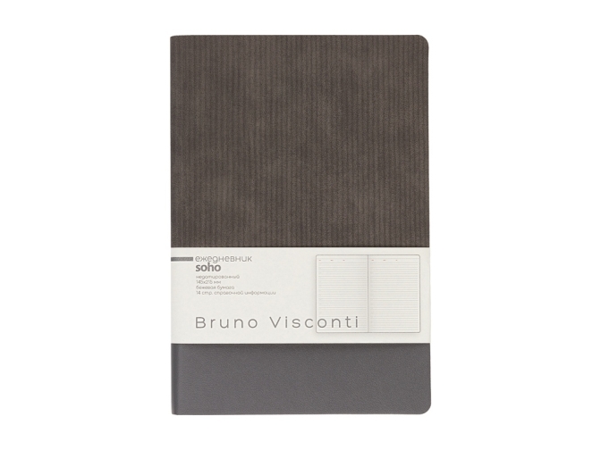 Гибкая мягкая обложка с эффектом муара, тактильно приятная с рифленой фактурой – главное украшение недатированного ежедневника Soho ТМ Bruno Visconti. Ляссе в цвет обложки как легкое дополнение к строгому, но элегантному образу. Никаких дополнительных деталей, а сколько благородства.