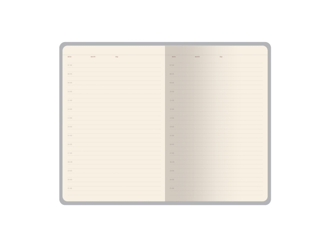 • раздел для планирования с линовкой и указанием времени с интервалом в один час;