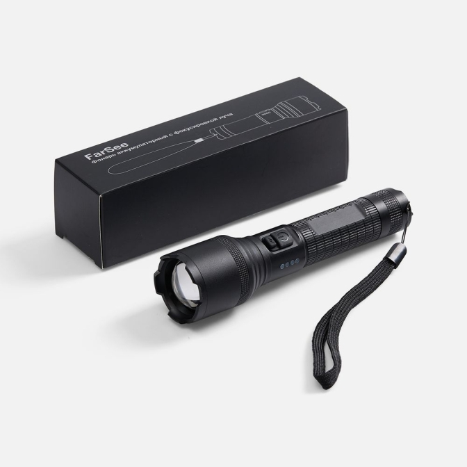 Мощный фонарик FarSee — идеальное решение для выполнения любых задач в темноте — в повседневных, походных или даже экстремальных условиях. Шесть режимов освещения позволяют подобрать оптимальный вариант для любой ситуации.Дальность луча до 300 метров, то есть приблизительно в три футбольных поля, позволяет разглядеть даже удаленные объекты. Это превращает фонарик FarSee в технологичный инструмент для навигации в лесу или поиска ориентиров в горах. Мощность светодиода 800 люмен примерно в 8 раз больше, чем у обычного карманного фонарика! Такой луч не просто рассеивает тьму, а создает четкое равномерное освещение без бликов и слепых зон.Фокусировка луча — удобная и необходимая во многих ситуациях опция. Нужно осветить тропу в походе? Выбирайте рассеянный свет. Хотите найти машину на парковке ночью? Сфокусируйте луч — и он дотянется до нужной точки.FarSee. Далеко хожу — далеко гляжу.Световой поток до 800 лм;Основной светодиод 15V XHP60;Фокусировка луча;Дальность светового луча: до 280 м в стандартном режиме, до 490 м при фокусировке луча;Влагозащита IP42;Входные параметры USB Type-C: 5 В, 1 A ;Работает от встроенного литий-ионного (Li-Ion) аккумулятора емкостью 1200 мАч;Режимы и время непрерывной работы:100% яркости — до 2 ч;80% яркости — до 2,5 ч;60% яркости — до 3 ч;Стробоскоп — до 6 ч;Сигнал SOS — до 6 ч.