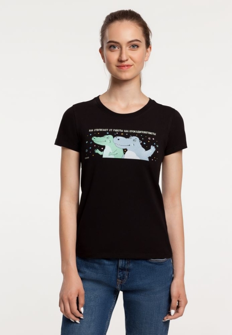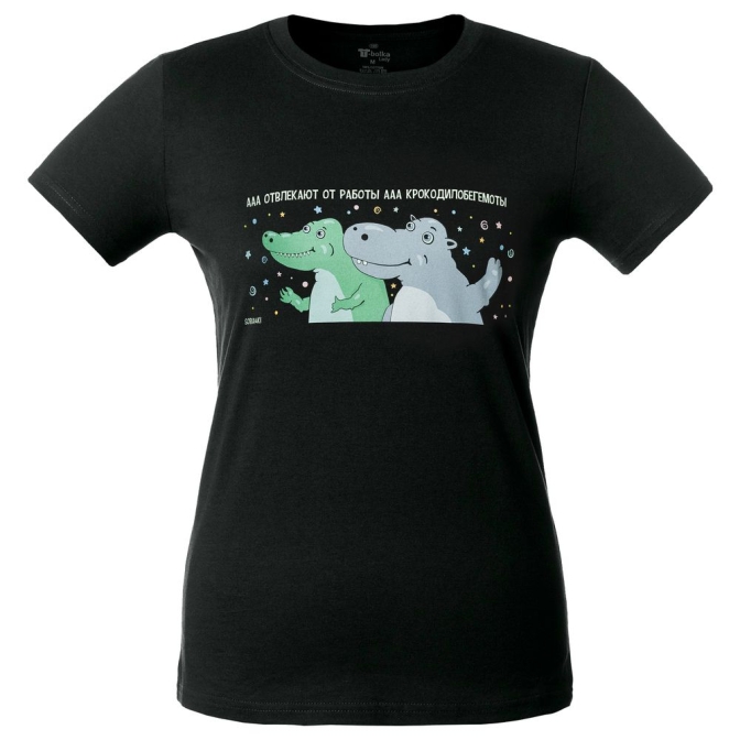 Крокодилобегемоты — это комичное олицетворение тех многочисленных факторов, которые все время мешают нам работать. Вы только взгляните на них! Несвоевременные звонки, засасывающая рутина, соцсети… Каждый сам может дальше продолжить этот список. Принт «Крокодилобегемоты» создан для того, чтобы переживать такие моменты было проще и веселее, а всевозможные рабочие проблемы превращались во внутрикорпоративную шутку.Дизайн: Яков Коган.Приталенная женская футболка стретч высокого качества.Гребенная пряжа: прочная и долговечная.Полотно супрем: гладкое, идеально для нанесения.Активное крашение полотна: стойкий цвет, не линяет.Ворот — резинка рибана с лайкрой: эластичная, не растягивается.Таблица размеров Допустимые отклонения S 44-46 M 46-48 L 48-50 XL 50-52 Длина изделия A +/- 1 61 63 65 67 Ширина груди A1 +/- 1 44 46 48 50 Ширина в плечах B +/- 0,5 38,5 39,5 40,5 41,5 Пройма C +/- 0,5 19 19,5 20 20,5 Длина рукава D +/- 0,5 18 19 20 21 Ширина рукава E +/- 0,5 14,5 15 15,5 16 Ширина горловины F +/- 0,5 18,5 19 19,5 20