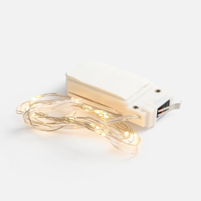 Прикрепите гирлянду в коробке на двусторонний скотч (прямо под крышку), передвиньте переключатель и закройте коробку. Произойдет новогоднее волшебство — при открытии коробки гирлянда загорится и подсветит всю красоту подарка.Гибкая проволока позволяет легко придать нужную форму15 светодиодовТеплый белый светГирлянда работает на 2 батарейках типа CR2032. Батарейки в комплекте