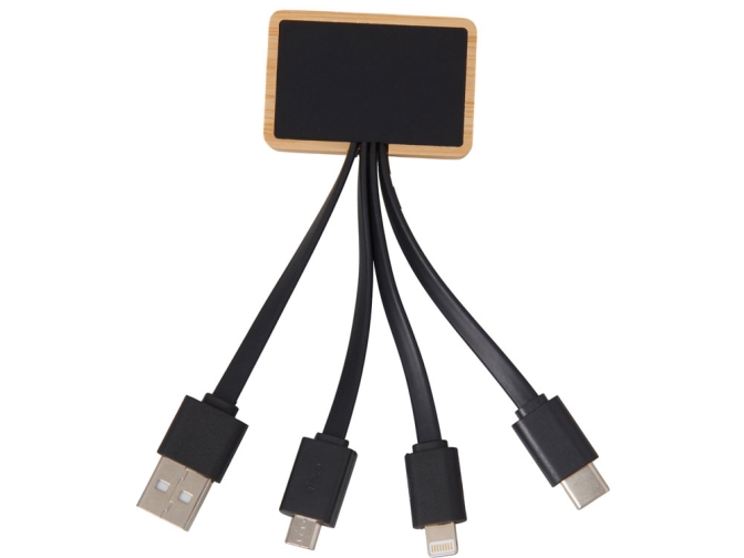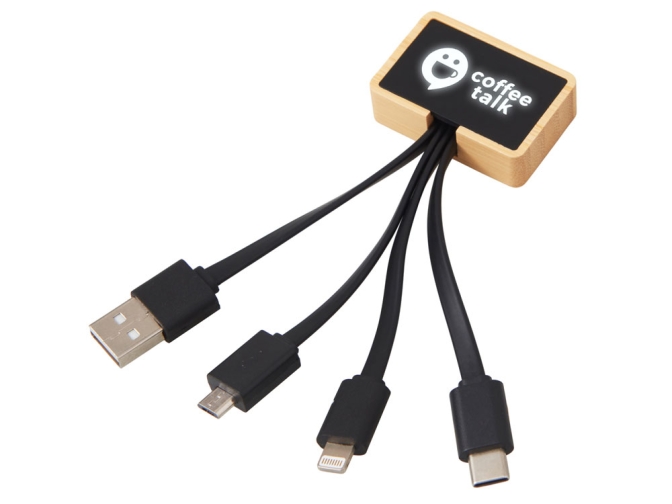 Универсальный зарядный кабель 3-в-1 — элегантное решение для владельцев любых гаджетов. С тремя разъемами (USB-C, micro USB, Lightning), он заменяет три кабеля в одном компактном корпусе, выполненном из натурального бамбука и переработанного ABS-пластика. Это не просто практичный аксессуар — это экосознательный стиль, который подчеркнёт ваш вкус и заботу об окружающей среде. Встроенная белая подсветка с возможностью нанесения логотипа добавляет изюминку: ваш бренд или инициалы мягко светятся при подключении, создавая эффект премиальности и индивидуальности. Идеален для повседневного использования, путешествий и в качестве запоминающегося корпоративного подарка. - 3 разъёма в одном — USB-C, micro USB и Lightning для любых устройств - Экологичный корпус — натуральный бамбук + переработанный ABS-пластик - Логотип с подсветкой — ваш бренд мягко светится при зарядке, усиливая узнаваемость - Компактный и стильный — всегда под рукой, в сумке, на столе или в путешествии - Идеальный корпоративный подарок — полезный, экологичный и персонализированный гаджет