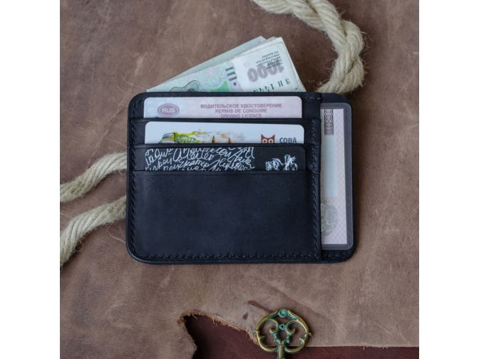 Стильный картхолдер для автолюбителей и практичных людей. В мире, где носить с собой карточки и деньги стало неотъемлемой частью нашей повседневной жизни, находить удобный и стильный аксессуар для их хранения может быть настоящим вызовом. Однако, с появлением картхолдера для автодокументов, этот поиск становится намного проще. Этот практичный и тонкий аксессуар из натуральной кожи предлагает идеальное решение для автолюбителей и всех, кто предпочитает компактные аксессуары. Благодаря своему тонкому дизайну и компактным размерам, кожаный картхолдер без труда поместится в любом кармане, будь то карман джинсов или внутренний карман пиджака. Теперь вы можете иметь все необходимые документы и деньги всегда под рукой. Картхолдер разработан с учетом потребностей автолюбителей и людей, которые часто пользуются карточками и деньгами. Он оснащен специальными отделениями, которые позволяют хранить до трех карточек, документы на машину и наличные деньги. Это значит, что вы сможете легко организовать свои важные вещи и не будете тратить время на поиск нужной карточки или документа. Натуральная кожа для стиля и долговечности: Картхолдер изготовлен из высококачественной натуральной кожи, что придает ему элегантный и стильный вид. Кожа также обеспечивает долговечность аксессуара, что позволяет использовать его на протяжении длительного времени без потери качества. Есть отделения: - для трех карточек - для документов на машину - для денег Кожа цвета черный тмин - это телячья кожа без дополнительной обработки лицевой части. Благодаря этому кожа имеет свою аутентичную фактуру и со временем приобретает свои индивидуальные черты.