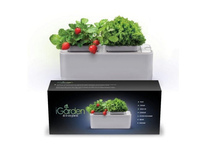 iGarden - смарт-сад в квартире! Сбылась мечта тех, кто мечтал ухаживать за собственным огородом, но не имел возможности постоянно ездить за город. Теперь это незачем, ведь выращивать цветы, овощи, фрукты, ягоды, травы и суккуленты можно даже дома. В основе прибора лежит принцип гидропоники – выращивание растений без использования земли. Поэтому никакой грязи в доме не появится. К тому же на воде и удобрениях цветы и растения всходят в три раза быстрее. Нужно лишь посеять семена, а дальше – наблюдать за ростом своего огорода. Новинку можно поставить на кухне или балконе, рабочем столе в офисе или возле кровати в спальне, использовать как элемент декора или сделать оригинальный подарок любителям эко-стиля. Смарт-сад оснащён электронной системой управления, основанной на принципах умного дома. Не нужно поливать растения и цветы каждый день, встроенный датчик сам подаст сигнал, когда им нужна будет вода. Безопасно и просто. Станьте огородником сами или научите детей выращивать дома любые культуры. В комплект входит 2 пакетика семян (гречка, лен или пшеница) в случайной комбинации.