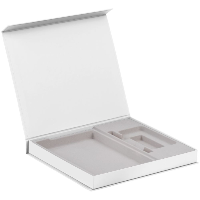 Подарочная коробка из переплетного картона, кашированного дизайнерской софт-тач бумагой Senzo, с крышкой на магните и съемным ложементом.Подходит для ежедневника 15х21х2,2 см, аккумулятора 12,3х7х1 см и ручки 14х1,3 см.Конструкция коробки предусматривает наличие технологического зазора шириной до 2 мм по линии сопряжения короба и крышки.