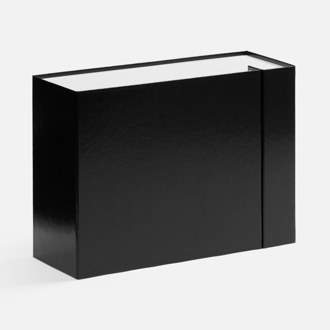 Плотная коробка из переплетного картона толщиной 2 мм с практичной конструкцией на двух створках. Складная система с уже нанесенным двусторонним скотчем позволяет быстро собрать коробку без дополнительных инструментов. Лайнер с полуглянцевым ламинированием устойчив к повреждениям и надолго сохраняет безупречный вид.Поставляется в плоском виде.