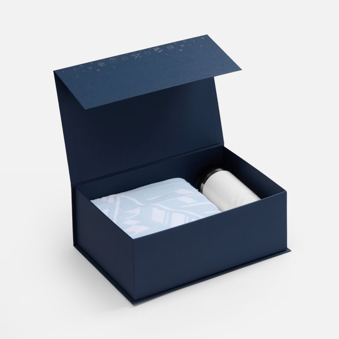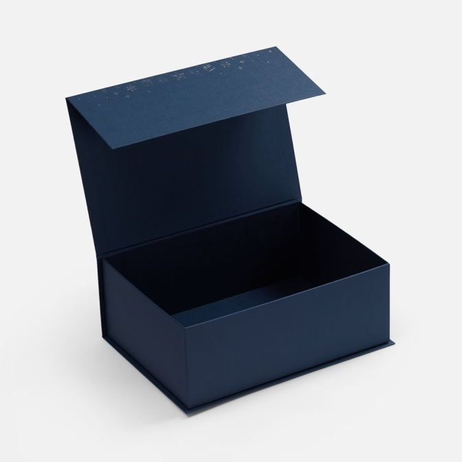 Подарочная коробка Snowlace с новогодним паттерном станет стильным дополнением к праздничному презенту.Коробка выполнена из переплетного картона толщиной 1,5 мм, кашированного бумагой с тиснением серебристой фольгой.