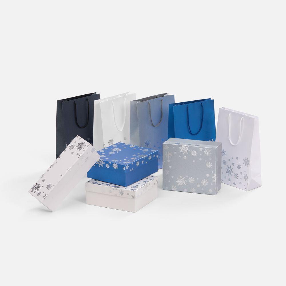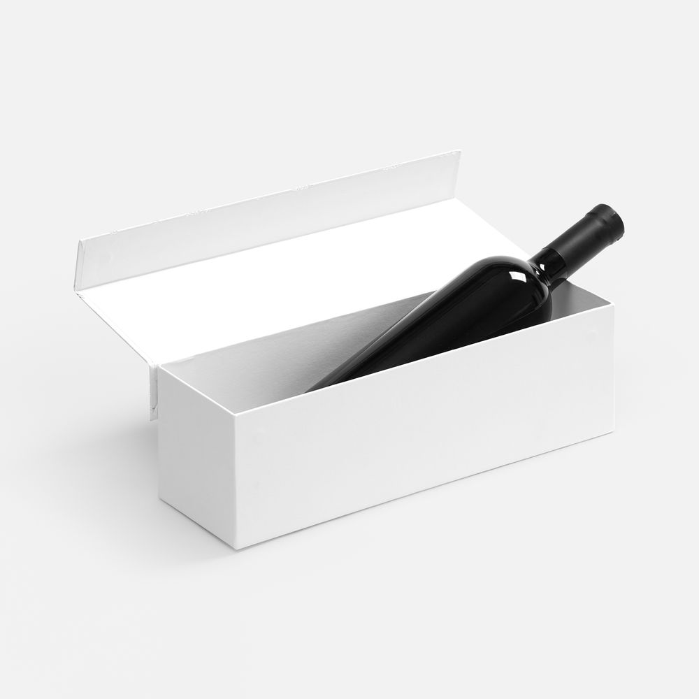Коробка выполнена из переплетного картона, кашированного дизайнерской бумагой Magic с тиснением серебристой фольгой, с крышкой на магните.