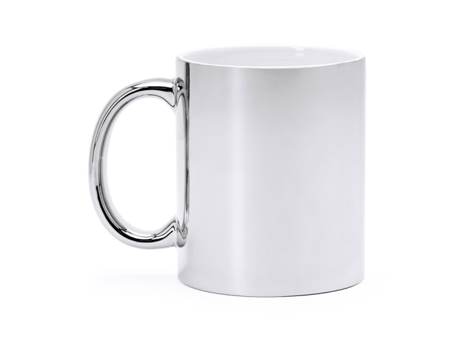 Керамическая кружка объемом 350 мл с глянцевым покрытием. Специально для лазерной гравировки. Доступна в серебряном и золотом цвете.