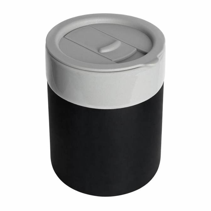 Кружка кермическая Silvia с силиконовой манжетой, серая-чёрная