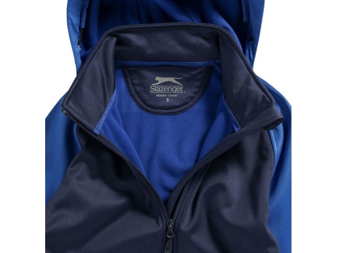Женская куртка софтшел Challenger. Стандартный покрой. Водонепроницаемая куртка Софт Шел. Дышащий. Отстегивающийся капюшон. Регулируемые манжеты на липучках. Завязки со стопперами внизу. Передний карман и карман на рукаве на обратных молниях. Сзади длиннее чем спереди. Принт Slazenger на шве слева. Однослойная джерси гладкого переплетения из 100% полиэстера, склеенного со 100% микрофлисом. 360 г/м².
