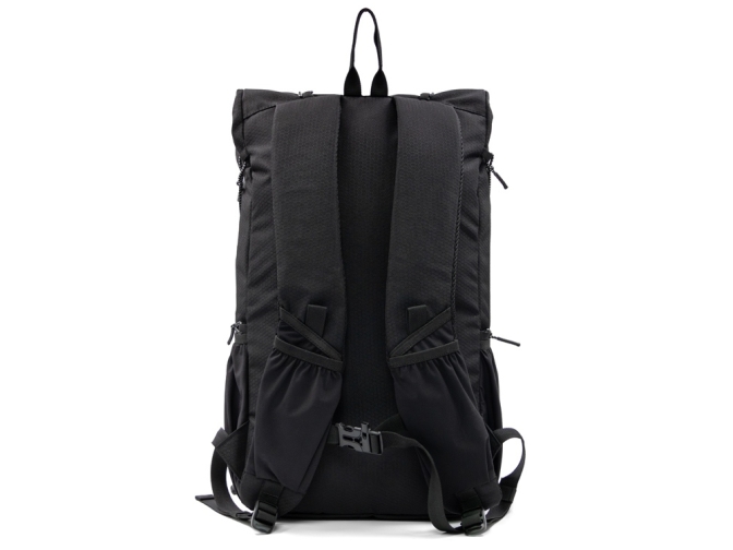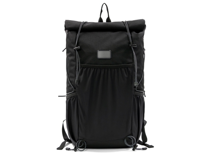 Легкий, элегантный, складывающийся рюкзак вместителен и удобен благодаря системе закрытия основного отделения roll-top, наличию трех наружных карманов спереди и по бокам из прочной эластичной сетки и внутреннему плотному карману для ноутбука до 16. Лямки с эластичными карманами для карт, телефона и других мелочей фиксируются на груди пряжкой, которую можно отрегулировать по высоте под ваш рост. Эластичные фиксирующие шнурки имеют светоотражающее нанесение, что обеспечивает дополнительную защиту в темное время суток. Дышащая сетка на спинке обеспечивает удобство и комфорт. На нагрудной пряжке предусмотрен свисток для экстренного случая. Водостойкая ткань верха изготовлена из переработанного пластика, пропитана специальным составом против загрязнения. В комплекте металлический шильд для нанесения вашего логотипа.