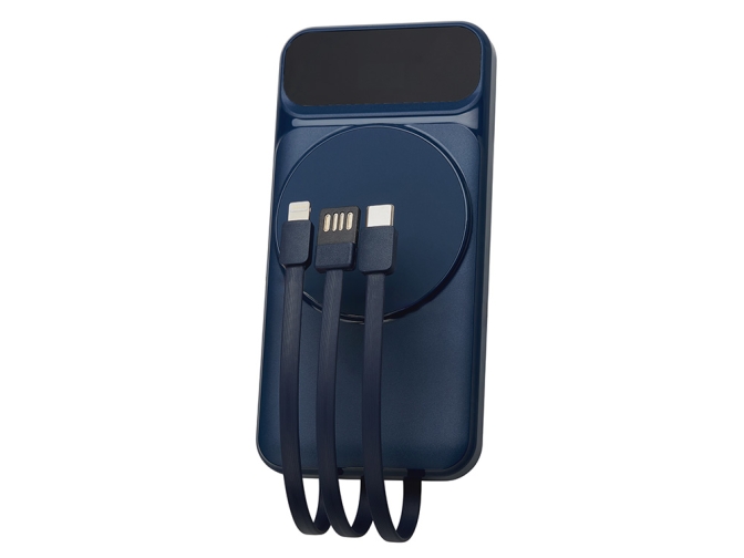 Функциональный и удобный внешний аккумулятор на 10 000 мАч обеспечивает быструю зарядку как по кабелям, так и беспроводным способом, поддерживая современные стандарты скорости. Цифровой дисплей на верхней панели мгновенно показывает точный уровень заряда, а встроенные кабели Lightning, USB-C и входной USB-A устраняют необходимость в дополнительных проводах — всё, что нужно для каждодневного использования, уже есть в самом гаджете. Компактные габариты, сопоставимые с размером смартфона, делают устройство идеальным для путешествий и повседневного использования. Сильные магниты гарантируют надёжное крепление при беспроводной зарядке. В комплекте есть силиконовая накладка: перед использованием удалите защитный стикер и прикрепите её к корпусу. - Встроенные кабели (Lightning, USB-C, USB-A) — не нужно искать дополнительные кабели: зарядка других устройств и подзарядка аккумулятора происходят через встроенные кабели. - Сильные магниты - Цифровой дисплей уровня заряда и статуса зарядки - Функции быстрой проводной и беспроводной зарядки - Упаковка с удобным и быстрым открытием
