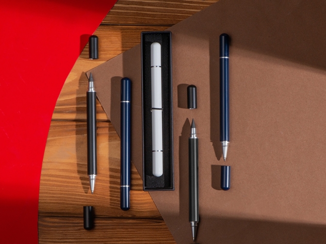 Стильный аксессуар 2в1: с одной стороны - ручка, с другой - вечный карандаш, который практически невозможно исписать!