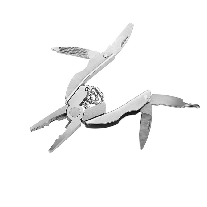 Виды нанесений: Гравировка А1Цвет: СеребристыйМатериал товара: Металл (нержавеющая инструментальная сталь)Размер товара: 6,1x3x0,65 смВес: 0.045Упаковка товара: Чехол (полиэстер)Вес брутто транспортной упаковки: 12.2Количество в транспортной упаковке: 250Размер транспортной упаковки: 26 x 37 x 16Функции: плоскогубцы, пилка, нож, прямая отвёртка, крестовая отвёртка