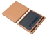 Блокнот в твердой обложке из rpet-пластика с металлической шариковой ручкой. В обложке магнитный держатель для ручки. Также верхняя часть обложки трансформируется в подставку для телефона. В блокноте 80 листов бумаги 70 г/м2.