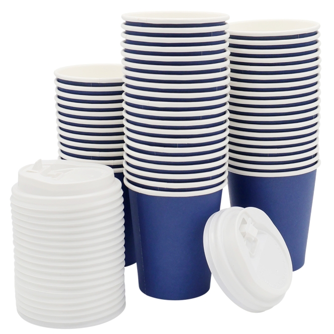 Набор бумажных стаканов с крышкой 8 унций (240 мл), 50 шт