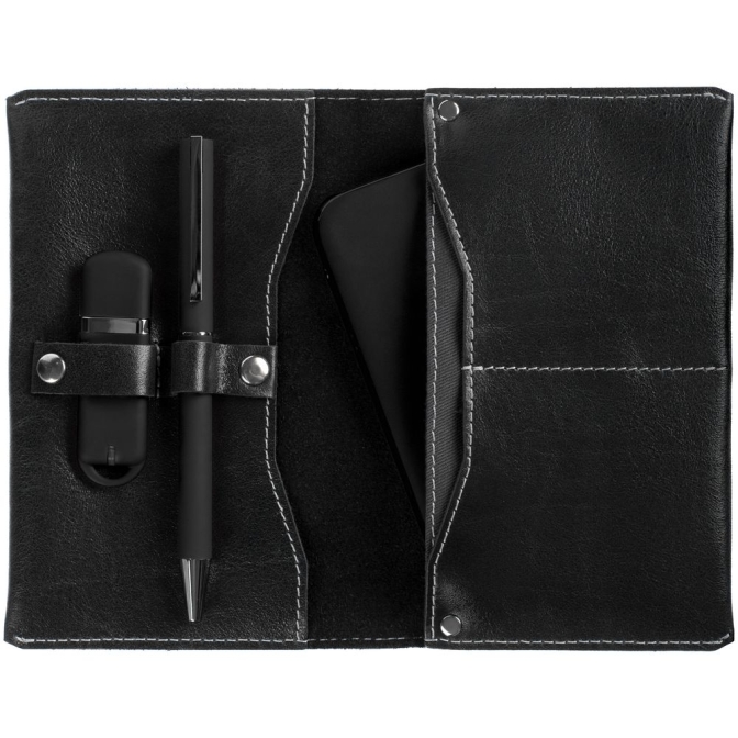 Изящное решение, если постоянно приходится работать с презентациями и висеть на телефоне. Все самое необходимое легко помещается в удобный кожаный футляр и не теряется при перемещениях с места на место.