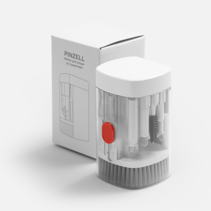 Набор для ухода за гаджетами Pinzell — решение для тех, кто любит поддерживать свои устройства в порядке и чистоте. Аксессуары набора помогут удалить пыль и загрязнения с разнообразных гаджетов: беспроводных и проводных наушников, кейса, планшета, телефона, клавиатуры, компьютера и фотоаппарата.Разнообразные щетки и аксессуары помогут убрать пыль из труднодоступных мест и мелких отверстий и даже прочищать сеточки наушников, что существенно улучшает слышимость.Набор предназначен для всех типов гаджетов. Он легко помещается в карман или сумку, что делает его удобным для использования в любом месте. Компактный размерВ комплекте: большая щетка, салфетка для ухода за дисплеем, контейнер для жидкости, пластиковый пинцет, щетка с жесткой щетиной, щетка с мягкой щетиной, чистящее перо со щеткой для наушников, насадка для чистки кейса от наушников, ершик для чистки кейса от наушников, щетка с короткой щетиной, щетка с наклонной щетиной, двусторонняя насадка для чистки разъемов зарядки, двусторонняя насадка для чистки камеры, инструмент для продувки, дуговой пинцет, ключ для отсека SIM-карты, инструмент для извлечения поврежденных ключейПоставляется в индивидуальной упаковке.