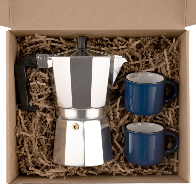 Материал: кружка - фаянс, кофеварка - алюминий, коробка - микрогофрокартон, кофеварка - алюминий, пластик, кружка - фаянс, коробка - микрогофрокартон.