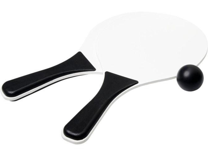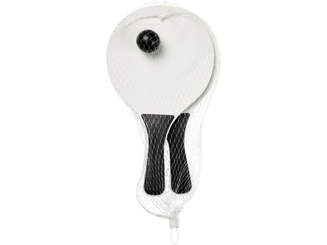 Набор для пляжных игр Bounce. С этим набором пляжных игр, предлагаемым в широкой цветовой гамме, всегда весело. Этот прочный набор пляжных игр изготовлен из дерева МДФ с цветной ручкой из полипропилена. Упаковано вместе с мягким шариком одного цвета в сетчатую упаковку, что позволяет провести веселый день на пляже. МДФ.