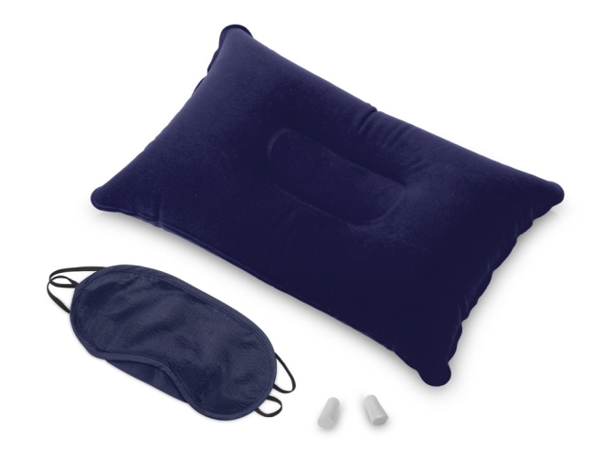 Комплектность: надувная подушка 34 х 23 х 1,4 см, маска для глаз 19 х 9 х 0,2 см, беруши d1,3 х 2.3 см - 2шт, мешочек 14 х 16 х 0,2 см.