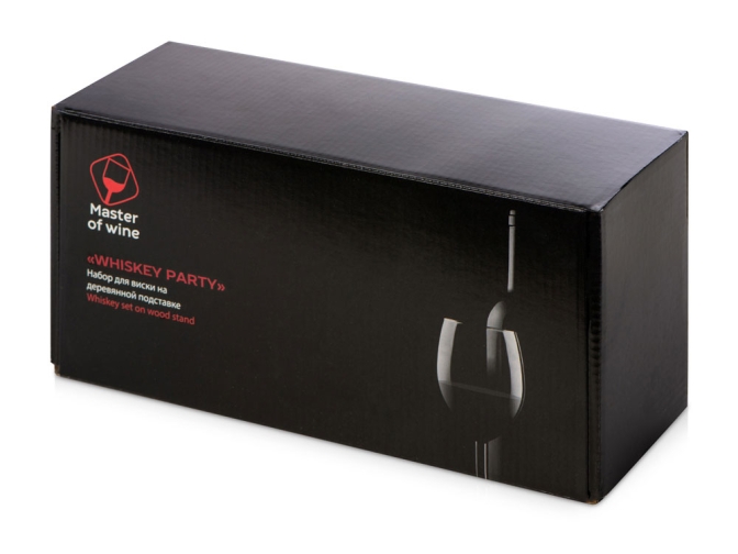 Набор бренда Master of Wine состоит из дубовой подставки для сета, двух бокалов для крепких напитков, шести камней для охлаждения и щипцов. Весь сет уже готов к вручению, поставляется в картонной коробке с фирменным стилем бренда.