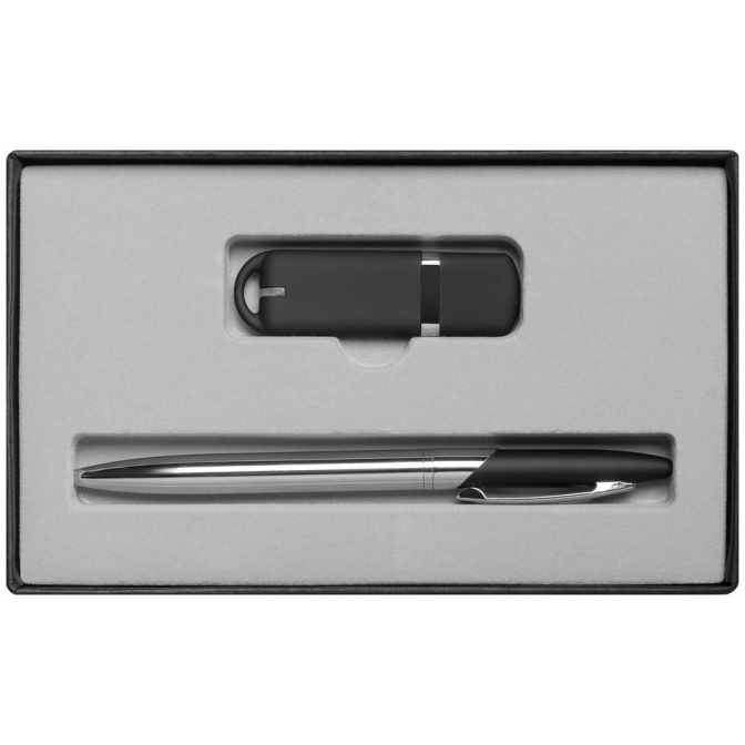 Материал: флешка - пластик, покрытие софт-тач, ручка - металл, покрытие софт-тач, переплетный картон.