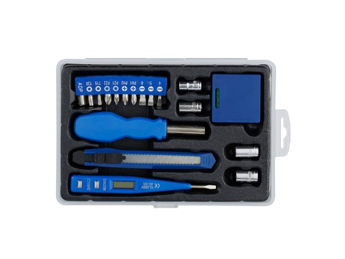 Набор инструментов на 18 предметов STINGER W0504 представляет собой оптимальное сочетание функциональности и качества. В компактном белом кейсе найдется всё для проведения мелкого бытового ремонта. Все предметы изготовлены из высококачественной закаленной углеродистой стали с хромированным покрытием, а рукоятки - из углепластика, обеспечивающего удобное положение инструмента в руке.