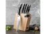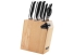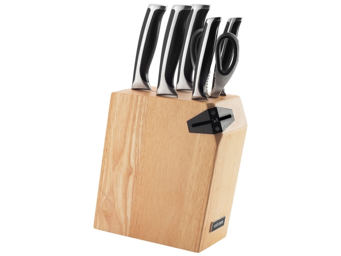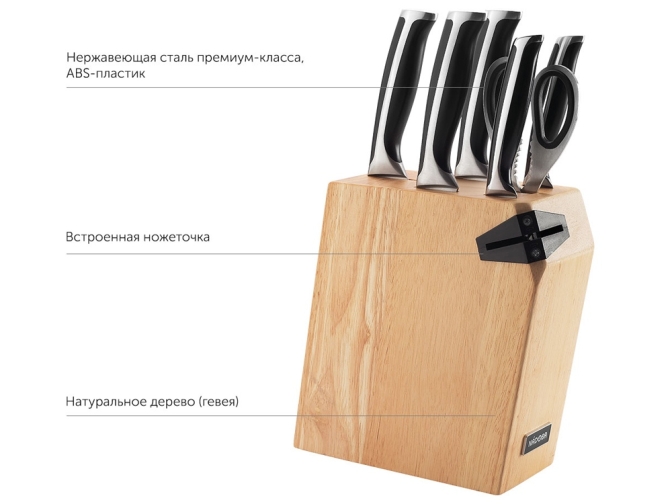 - Ножи серии Urša изготовлены из высококачественной нержавеющей стали премиум класса (56- 58 HRC), лезвия ножей остаются острыми очень долгое время. - Ручки ножей выполнены из кованной нержавеющей стали и прочного ABS-пластика. - Блок набора ножей, входящего в серию, изготовлен из натурального дерева (гевея) и оснащён встроенной ножеточкой. Ножницы из набора оснащены открывалкой для бутылок. - Гарантия на все ножи серии Urša 10 лет. Комплектность: 1. Нож для овощей, 10 см 2. Нож универсальный, 14 см 3. Нож Сантоку, 17,5 см 4. Нож разделочный, 20 см 5. Нож поварской, 20 см 6. Ножницы кухонные 7. Блок для ножей c ножеточкой