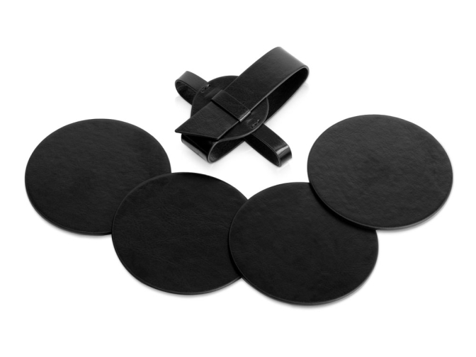 Продукция линейки Fabrizio выглядит элегантно и богато, а ее ассортимент состоит из разнообразных товаров, обладающих фамильным лоском Fabrizio. Все товары выполнены из PU-кожи, искусственного материала, который напоминает натуральную, но создан с любовью к природе - при создании продукции Fabrizio ни одно животное не пострадало. Материал прекрасно подходит для тиснения, которое особенно выигрышно будет смотреться на столь роскошных аксессуарах. Набор состоит из четырех подставок и ремня-чехла, с помощью которого костеры очень удобно хранить в одном месте. Подставки круглой формы идеально подойдут для бокалов разного диаметра. Универсальная форма, легко моющийся материал, персонализация на самих костерах, а также ремешке.